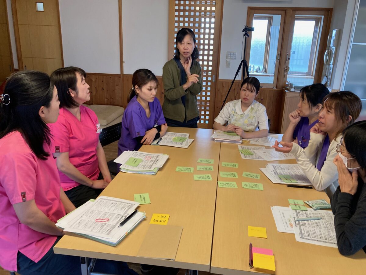 最後40分ほど実施した待合室を使った患者応対のロールプレイング。設定とねらいだけを私が説明すると、皆意見を出し合い、患者役スタッフ役で見事に場を作り、意見交換が始まります。私は少しコメントをするだけです。まさに、学び合い、活かし合う雰囲気がこれだな…と、じわじわ感動です。